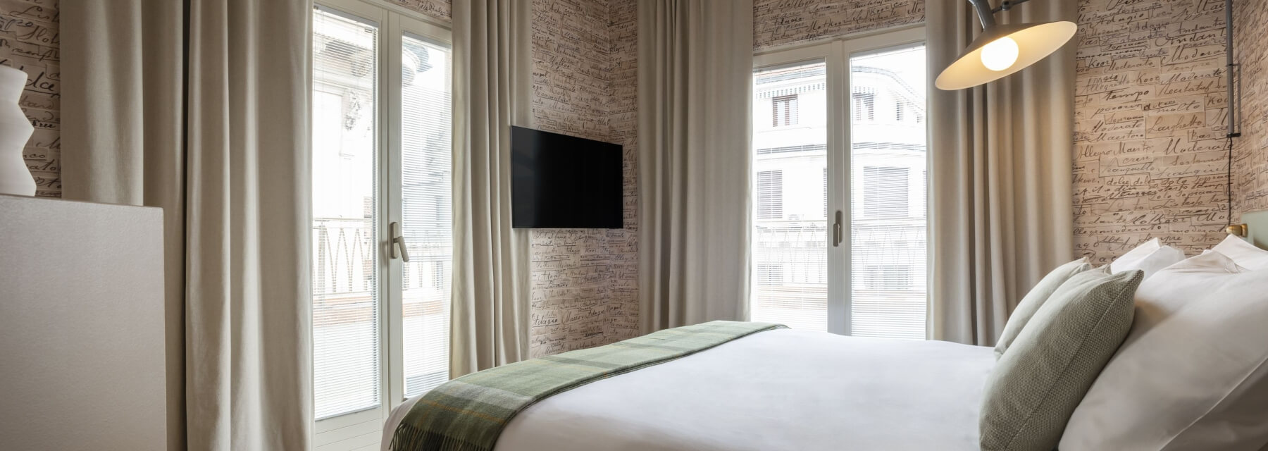 La Manzoni Suite al quinto piano è un affascinante bilocale situato al quinto piano dell'edificio. Questo appartamento di design ha un magnifico balcone che la circonda, illuminando tutti gli ambienti e offrendo una splendida vista sul Duomo di Milano. Sul cortile interno si affacciano la cucina, la luminosa veranda e il bagno wellness, rendendo questa suite il luogo perfetto per vivere l'eleganza e il comfort che DOMYA sa offrire.